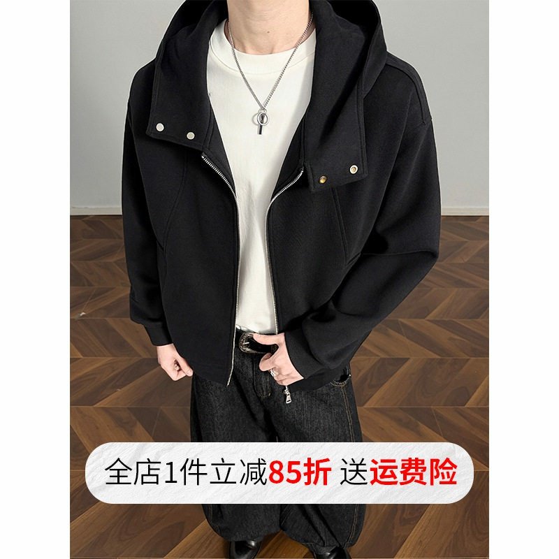 320g重磅华棉解构连帽卫衣oversize宽松休闲百搭落肩袖开衫外套男