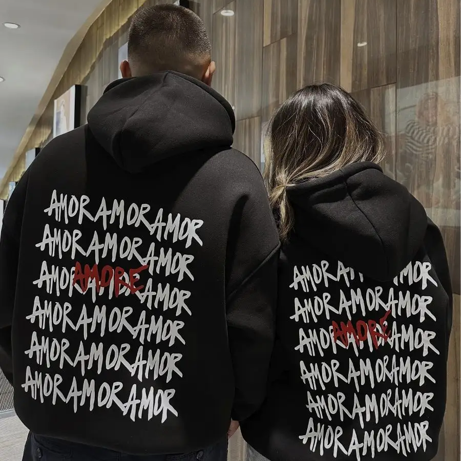 秋冬重磅宽松加绒加厚字母印花连帽卫衣oversize美式潮牌情侣帽衫