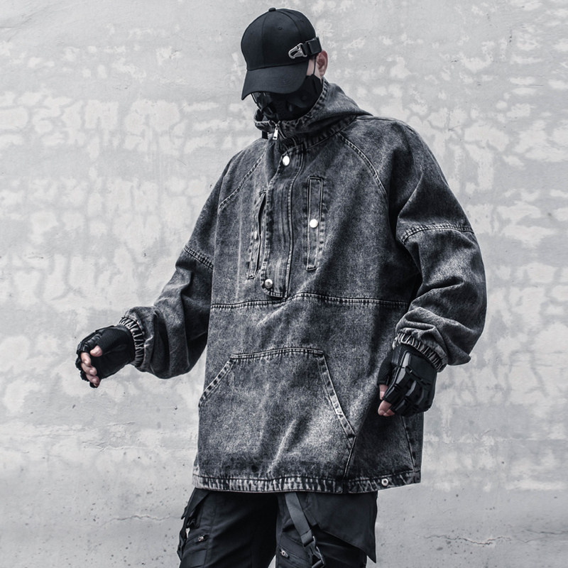 小众复古高街水洗做旧慵懒风牛仔外套男连帽卫衣oversize夹克潮牌
