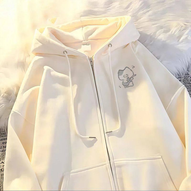 小众新款百搭时尚卡通印花连帽卫衣oversize开衫情侣外套女潮ins