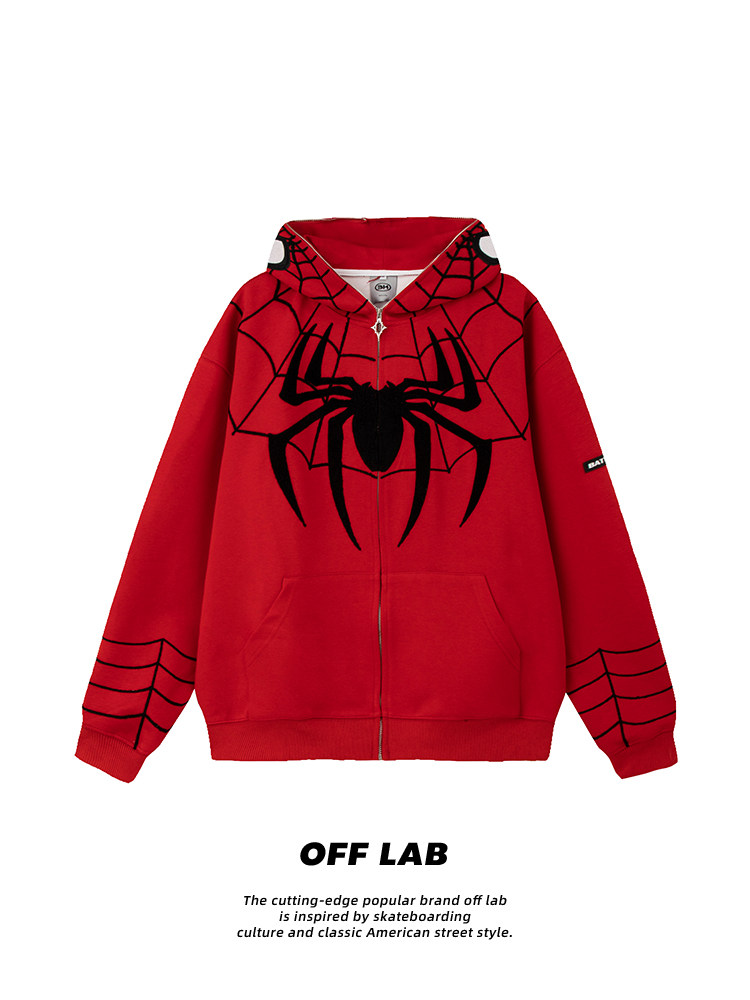 OFFLAB 街头设计感字母动漫蜘蛛拉链开衫连帽卫衣oversize外套ins