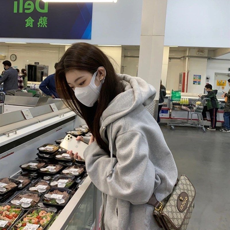 韩系ins甜美风宽松秋冬粉色连帽卫衣oversize慵懒风加绒上衣外套