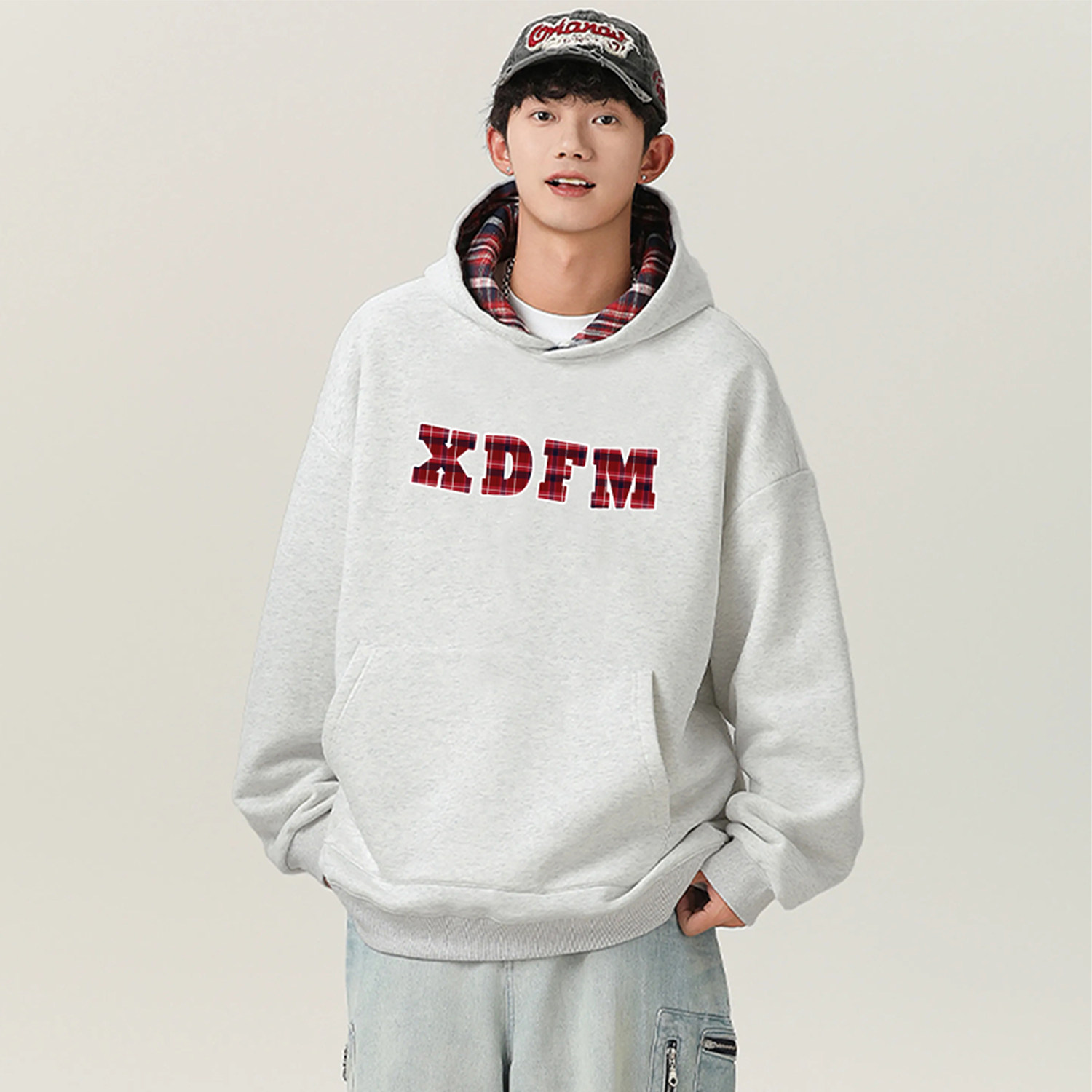 XDFM美式三星字母印花加绒加厚套头连帽卫衣oversize基础款帽衫