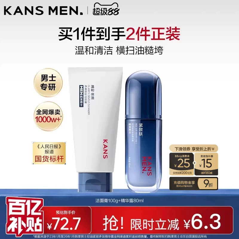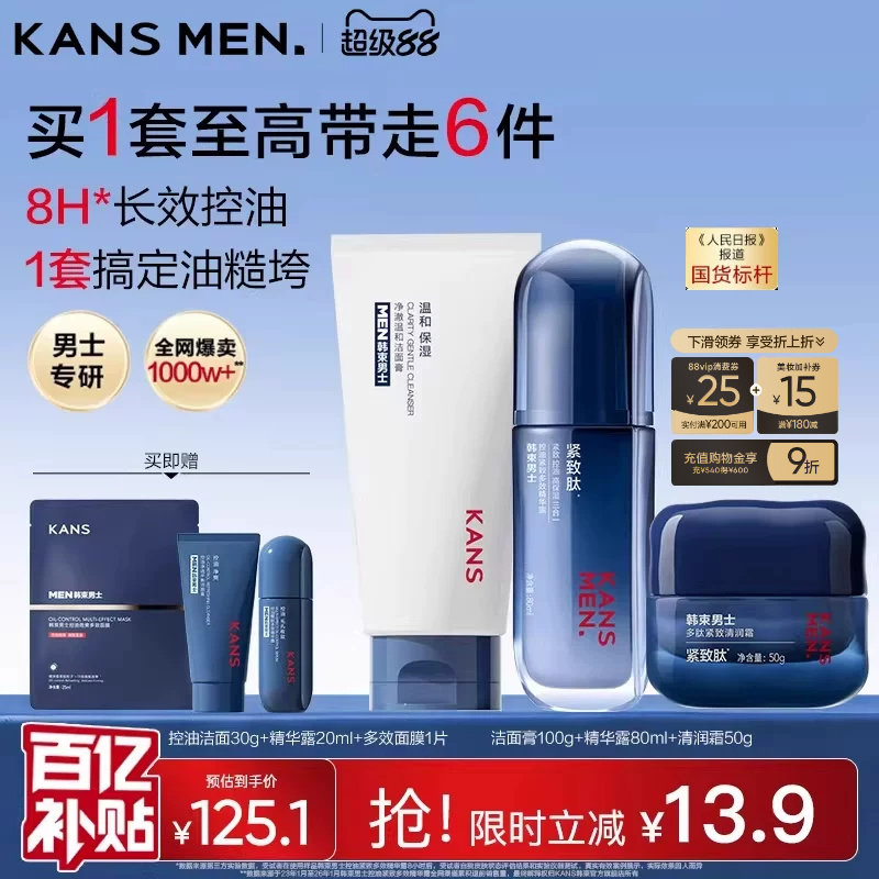 韩束男士护肤品水乳精华露乳液补水紧致面霜洗面奶三合一套装官方