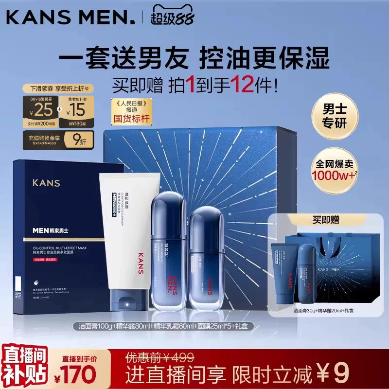 [店播直降]韩束男士护肤品洗面奶面霜水乳礼盒精华露生日礼物套装