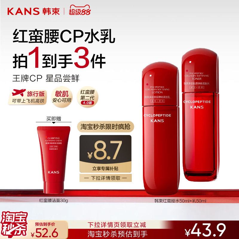 【下拉详情领直播专属券】韩束红蛮腰水乳套组环六肽护肤品礼盒装