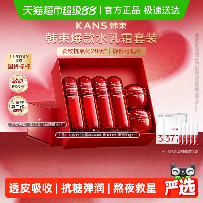 韩束红蛮腰水乳套装抗皱紧致补水保湿精华学生护肤品礼盒官方正品