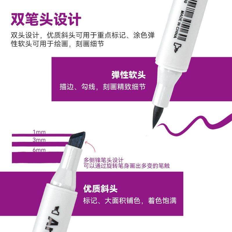 米娅酒精马克笔双头单支学生手绘动漫建筑服装景观60/80色笔盒油性水彩笔200色全套可自由组合美术生绘画专用