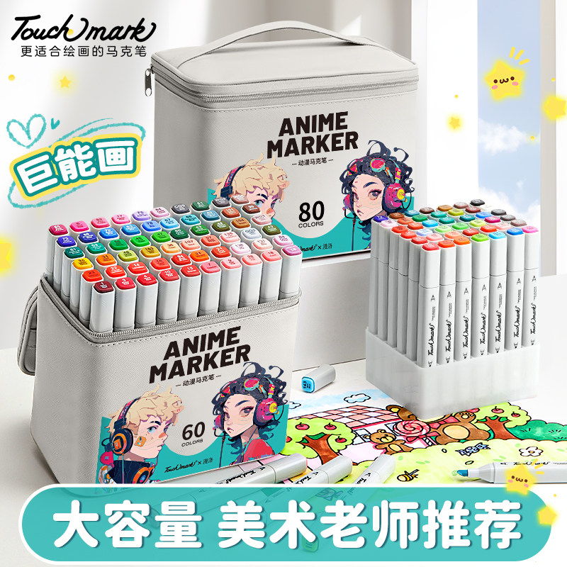 touchmark双头酒精马克笔学生美术专用硬头60色80色168色全套浅色肤色绘画笔小学生幼儿园绘画漫画动漫水彩笔