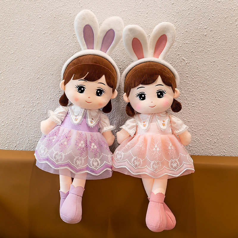 可爱菲儿公主布娃娃毛绒玩具女宝宝安抚陪睡兔耳娜莎玩偶床上礼物