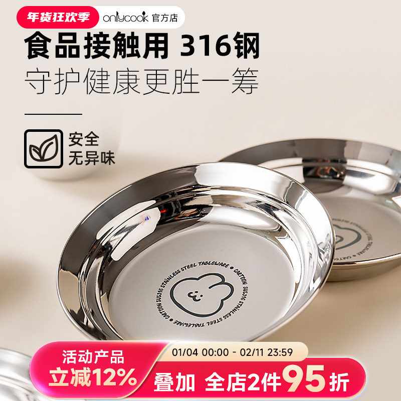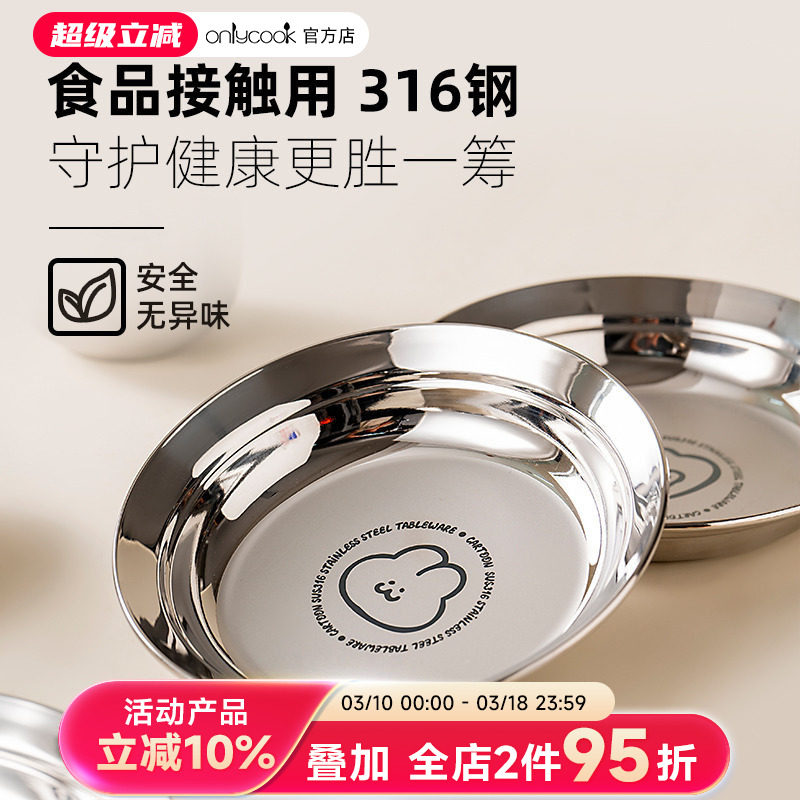 onlycook 316不锈钢儿童吃饭盘子宝宝吃饭卡通餐盘备菜盘水果圆盘