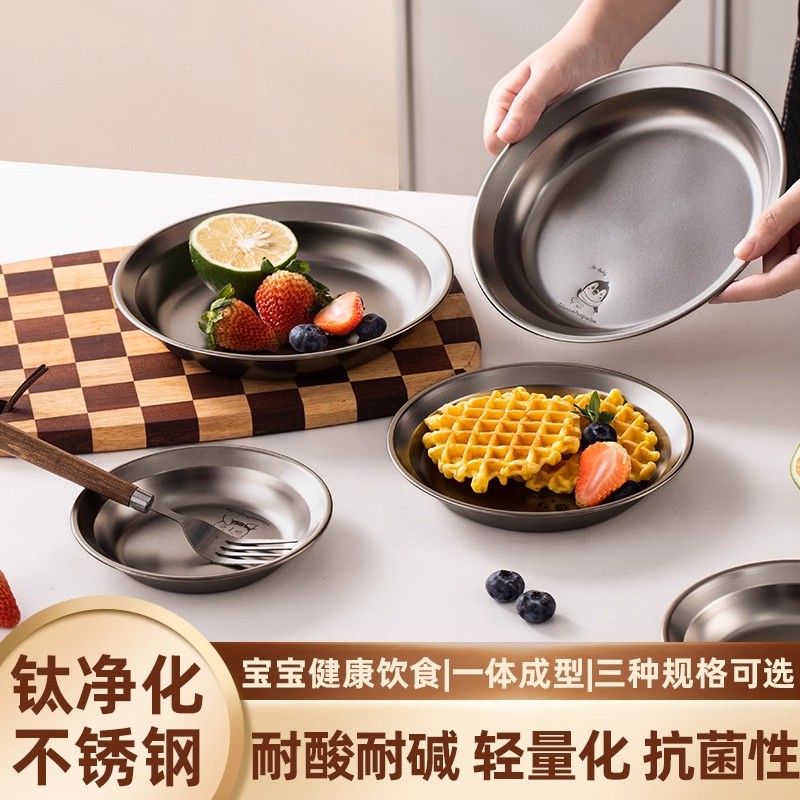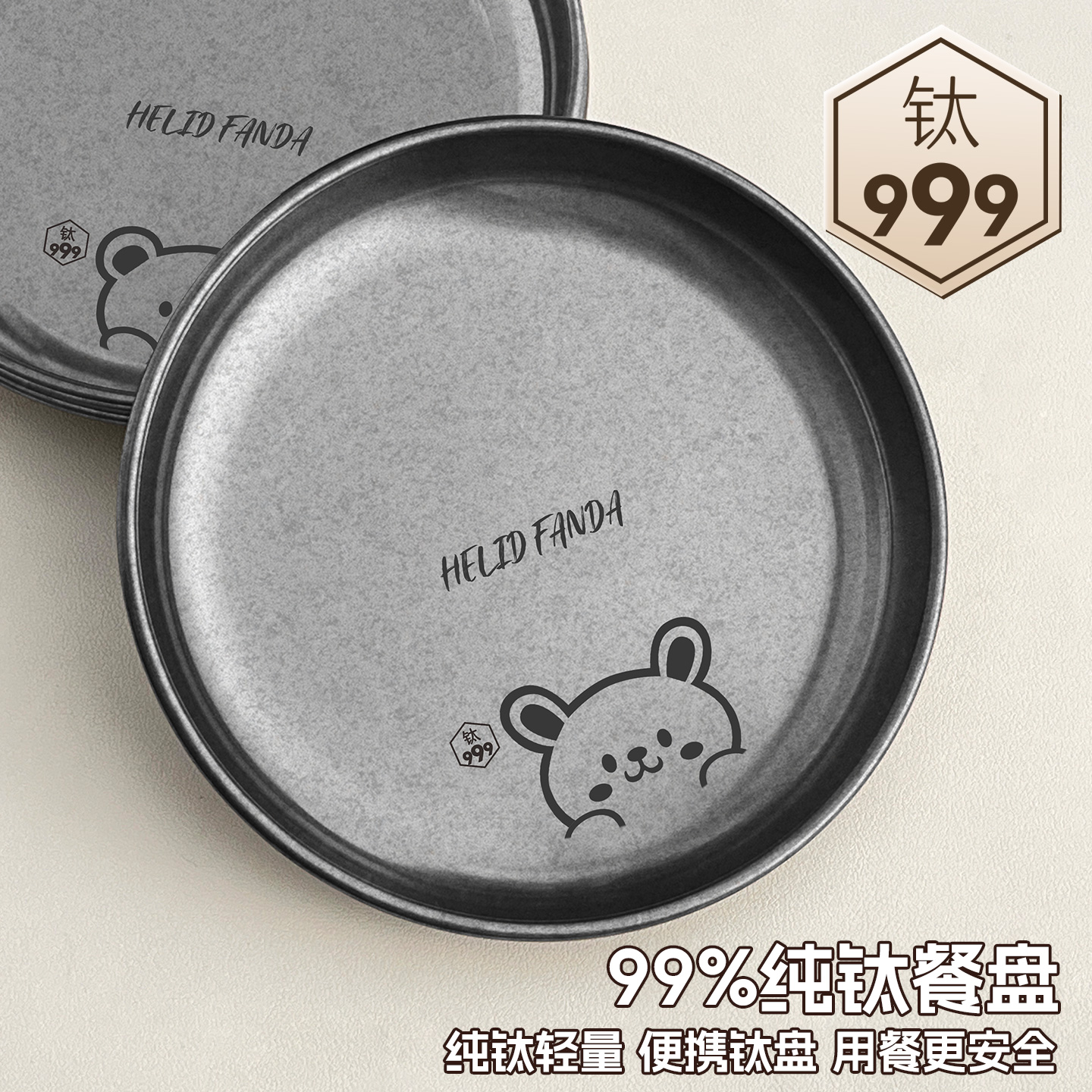 999纯钛儿童吃饭盘子宝宝卡通餐盘菜盘水果圆盘家用加厚防摔盘子
