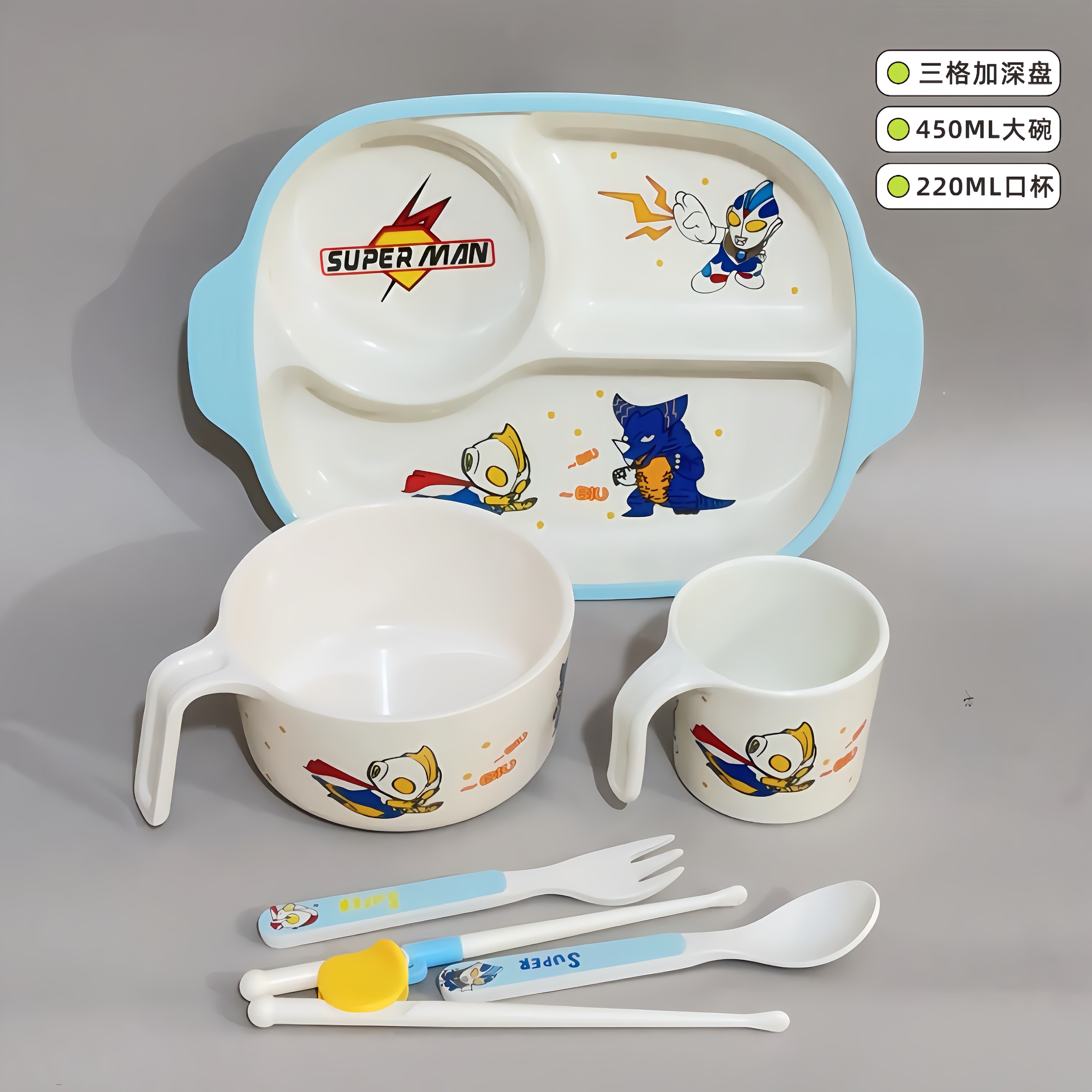 304幼儿园儿童餐具卡通餐盘小学生水杯宝宝筷子刀叉勺防烫碗套装