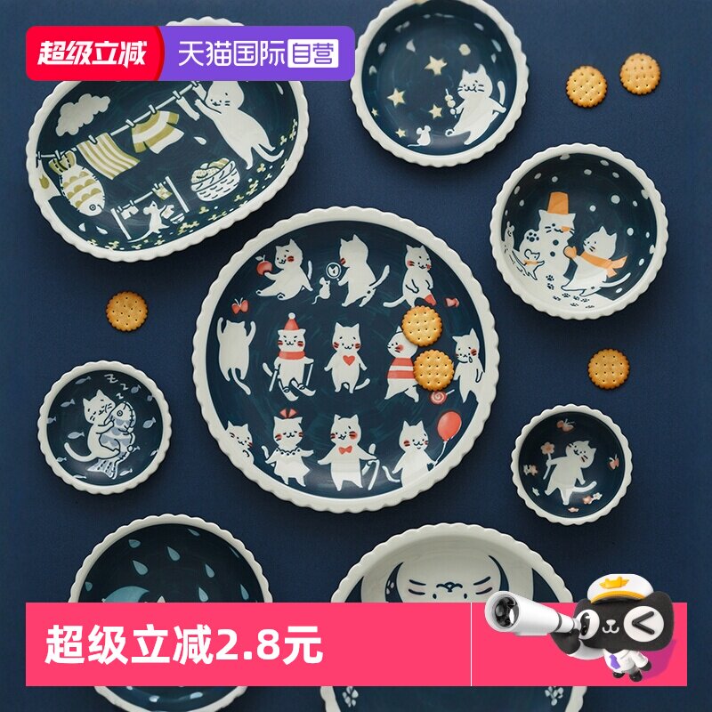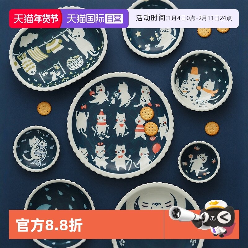 【自营】猫咪图案盘子碗日本进口可爱日式餐具卡通餐盘家用盘碟子