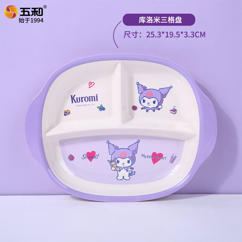 (WUHE)五和库洛米儿童餐具卡通家用防烫宝宝餐盘分格盘三格饭碗