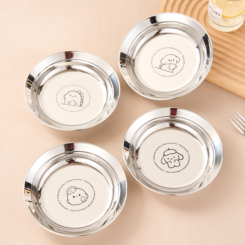 304不锈钢盘子家用菜盘碟水果圆盘儿童吃饭卡通餐盘食品级蒸深盘