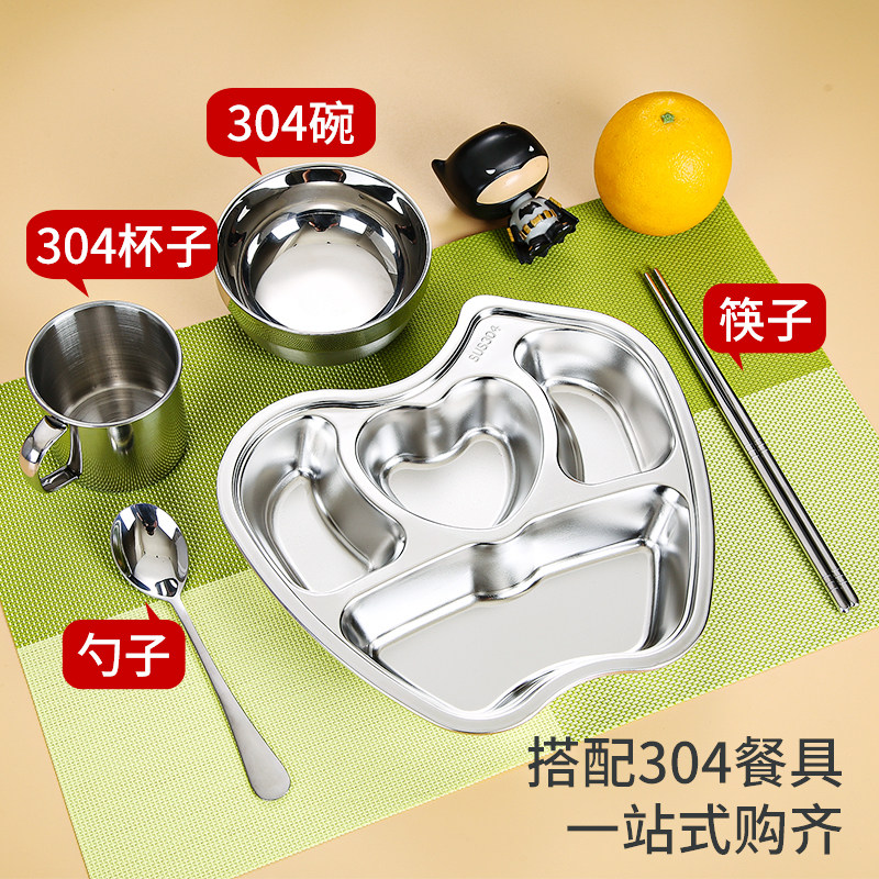 不锈钢幼儿园304卡通餐盘苹果餐盘儿童爱心餐具学生快餐盘碗杯勺