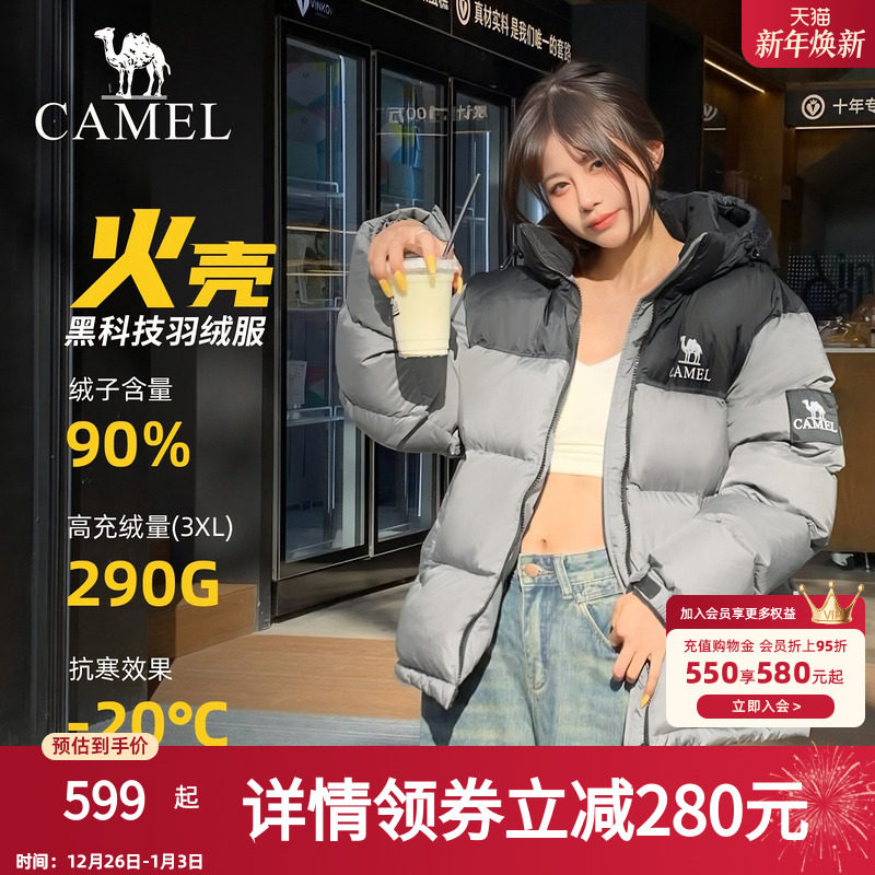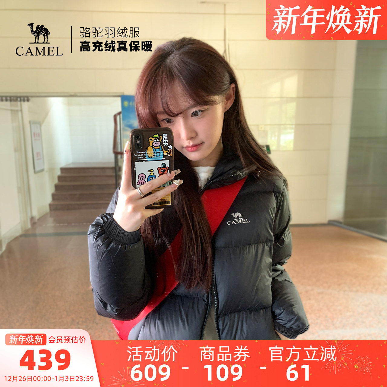 骆驼黑钻3.0羽绒服女短款冬季新款保暖防风连帽羽绒衣面包服外套