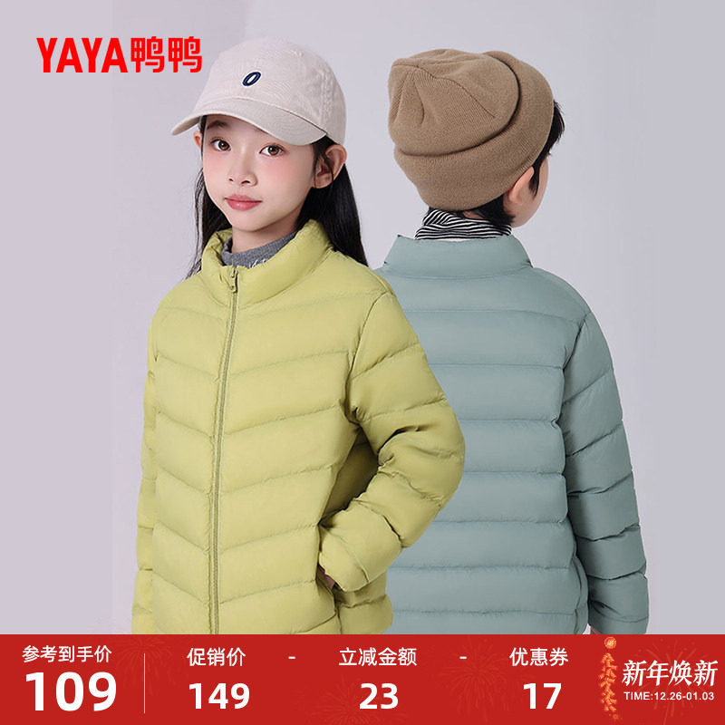 鸭鸭儿童羽绒服冬季轻薄款男童女童时尚休闲短款保暖连帽纯色外套