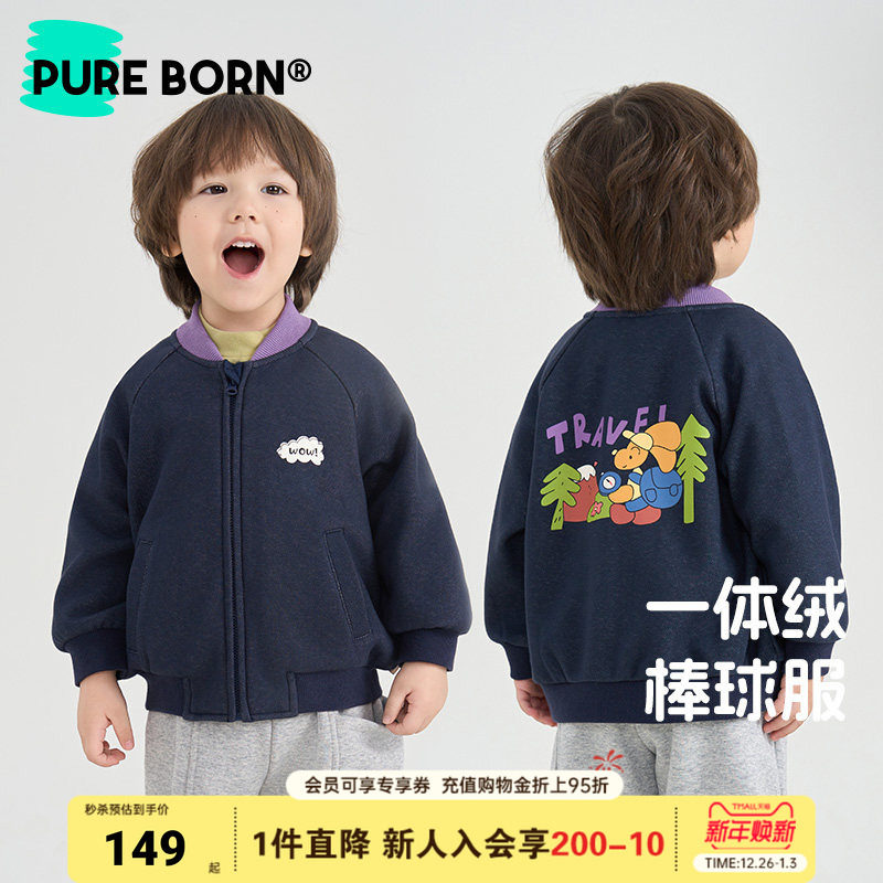 博睿恩儿童仿牛仔加绒外套2025秋冬季新款男女宝宝百搭休闲外套