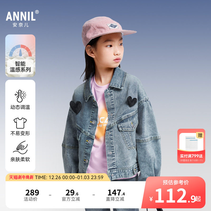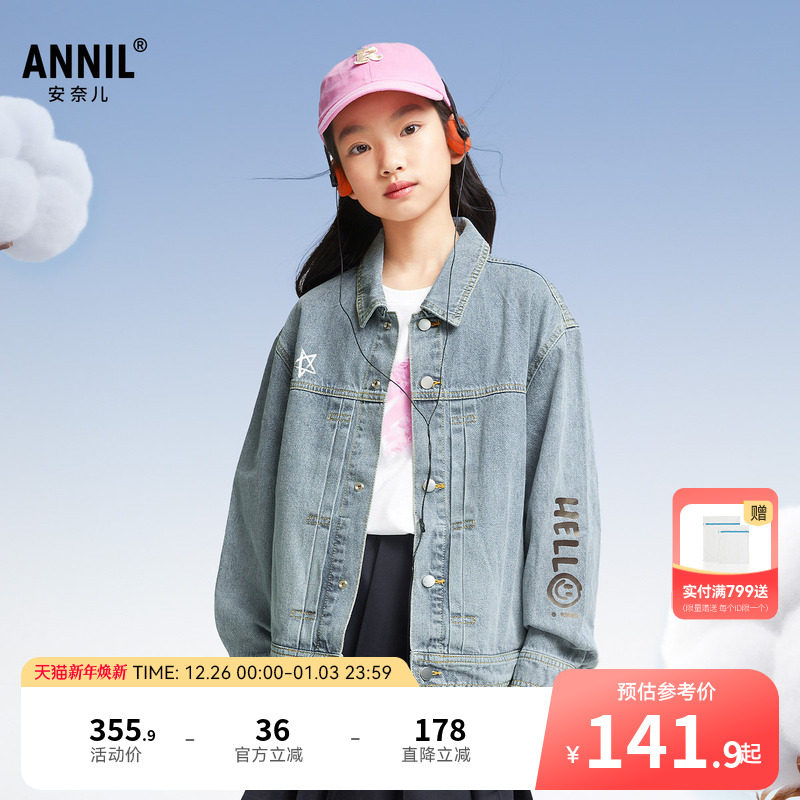安奈儿童装男童女童牛仔外套2025春新款纯棉休闲透气宽松弹力