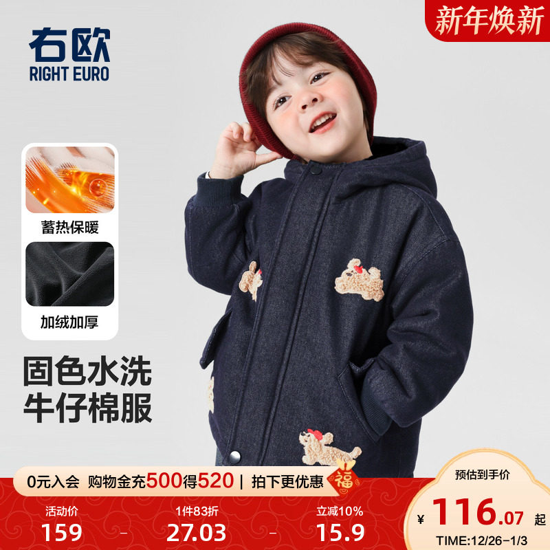 右欧男童女童加绒加厚牛仔外套冬季新款童装儿童时髦洋气保暖棉服