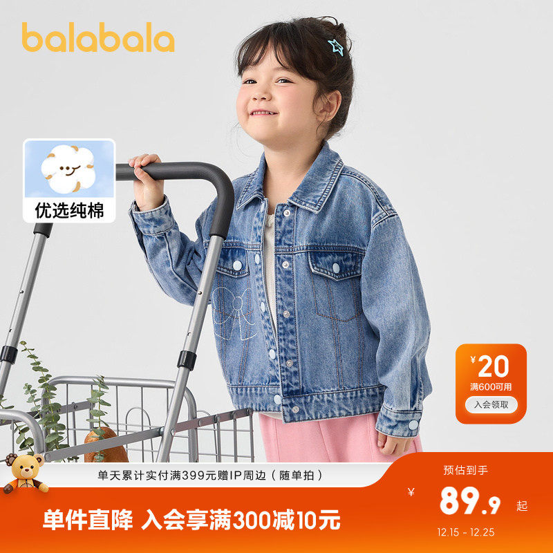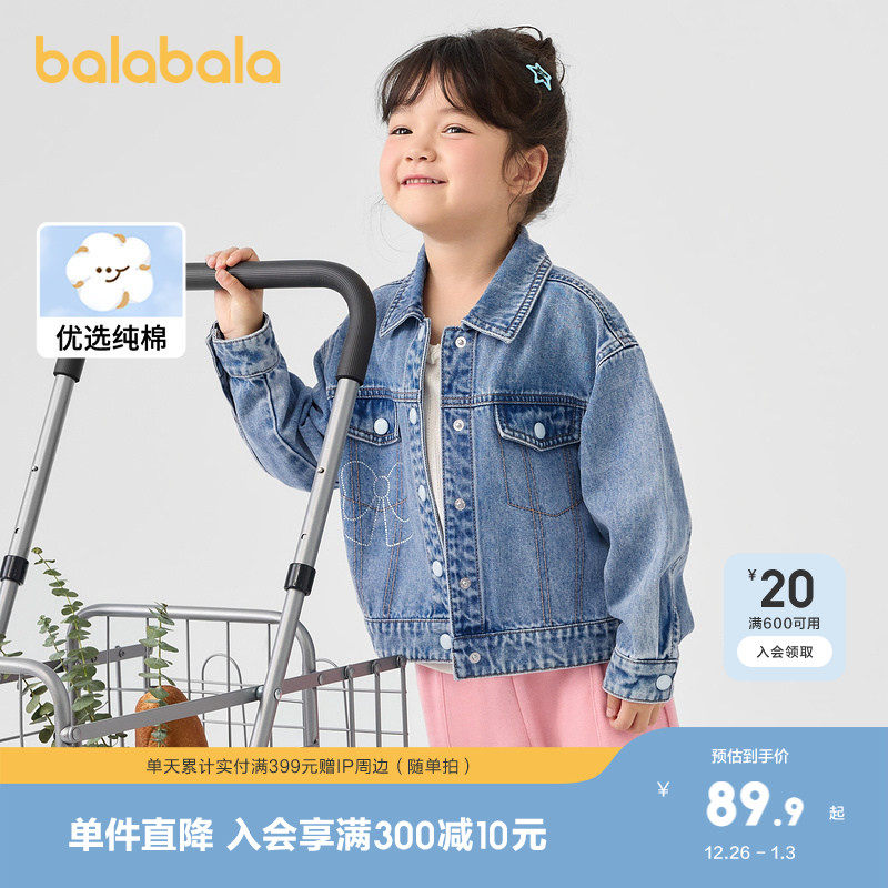 【商场同款】巴拉巴拉女童外套儿童上衣2025新款秋装全棉牛仔舒适