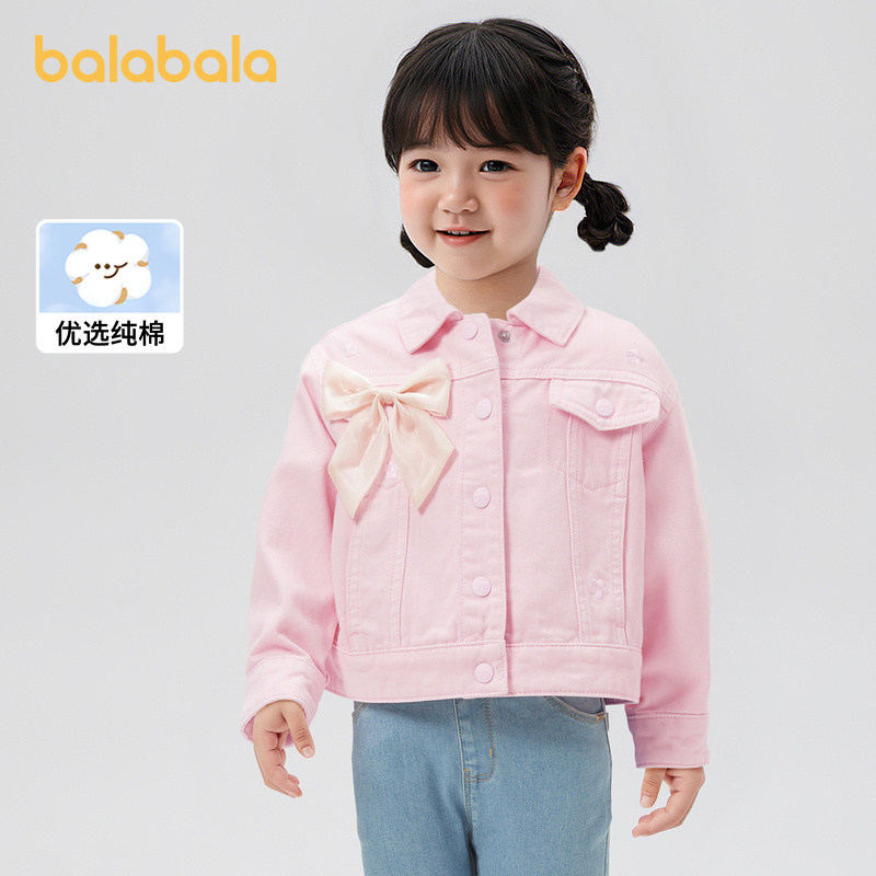巴拉巴拉童装儿童牛仔外套女童上衣秋装2025蝴蝶结上衣百搭小童