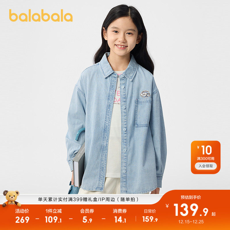 巴拉巴拉童装女童外套儿童上衣2025春秋装新款牛仔衬衫时尚百搭潮