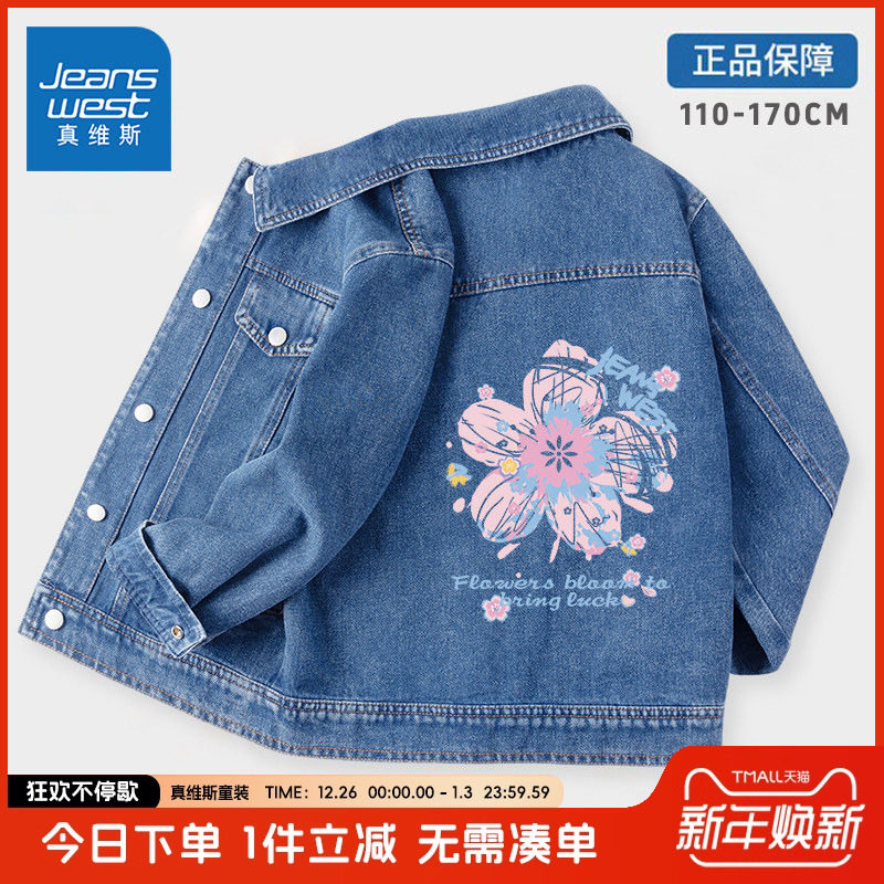 真维斯童装女童春秋外套2025新款儿童秋季牛仔衣大童洋气秋装夹克