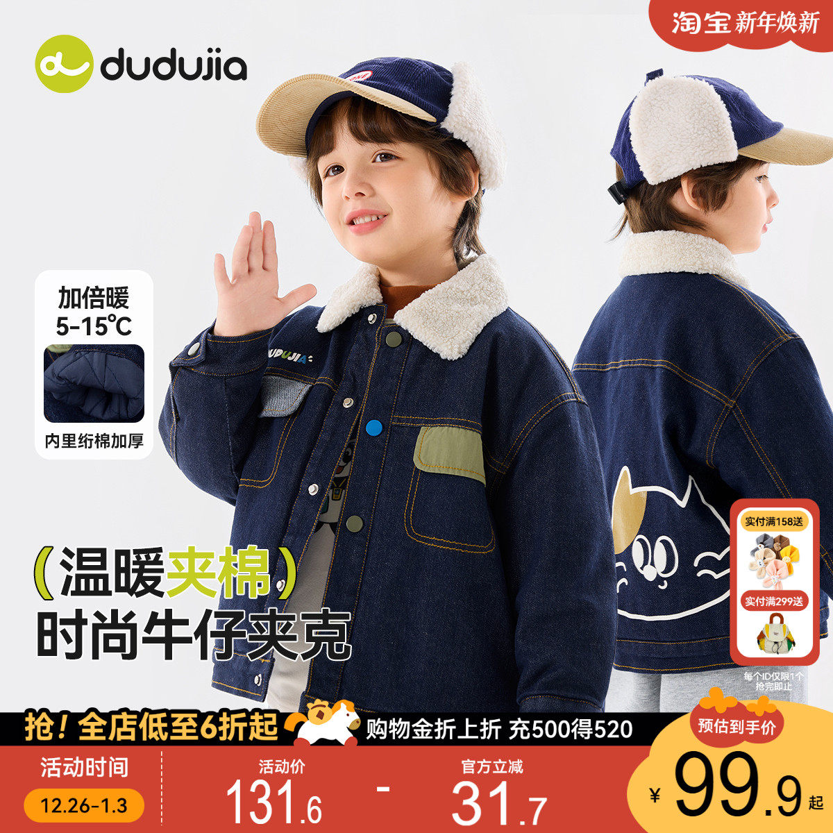 嘟嘟家男童外套冬款儿童夹棉女童洋气牛仔服加厚加绒上衣宝宝冬装