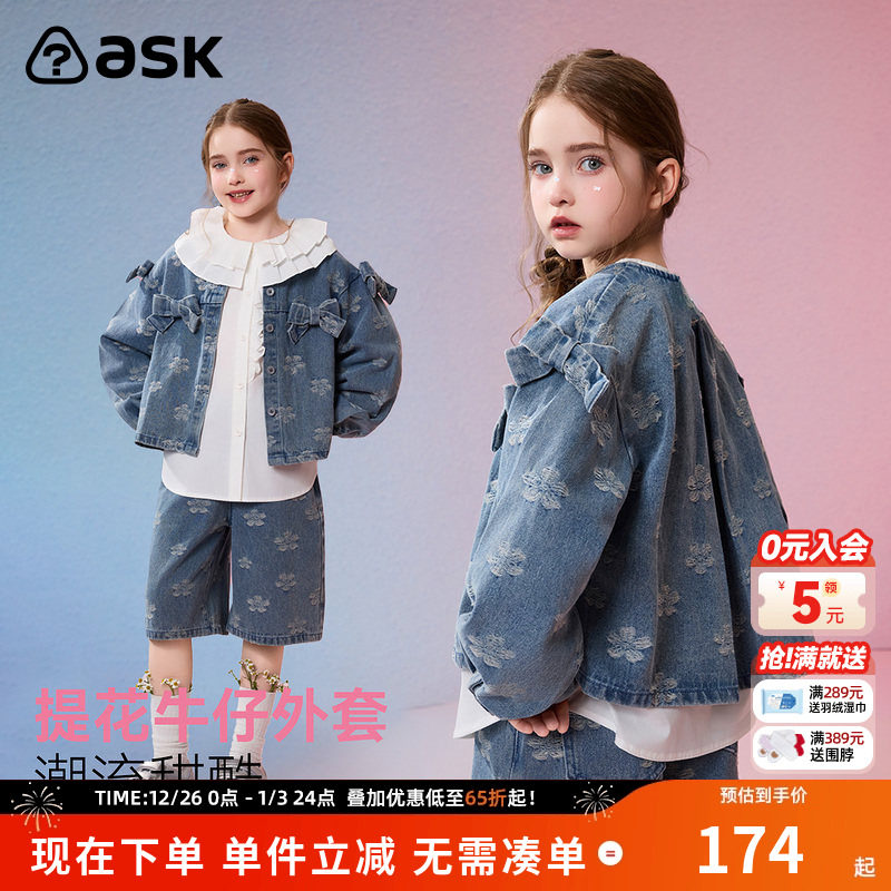 【2026春季新款】ask儿童牛仔外套女童提花潮流甜酷上衣宽松外衣