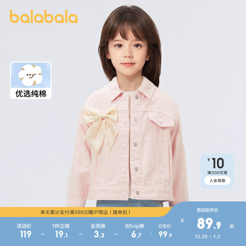【商场同款】巴拉巴拉儿童牛仔外套女童装2025春季新款蝴蝶结印花