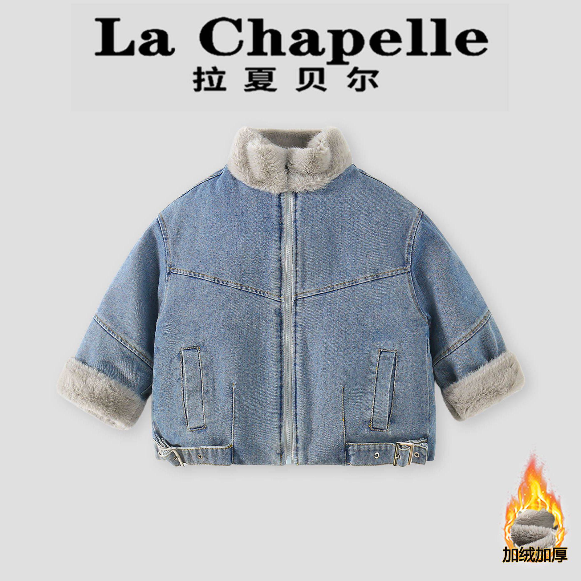 拉夏贝尔女童牛仔外套2025新款洋气儿童加绒加厚上衣女孩休闲冬装
