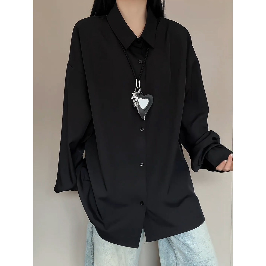 那不勒斯黑色衬衫男女春季人夫感穿搭长袖衬衣高级感痞帅西装内搭