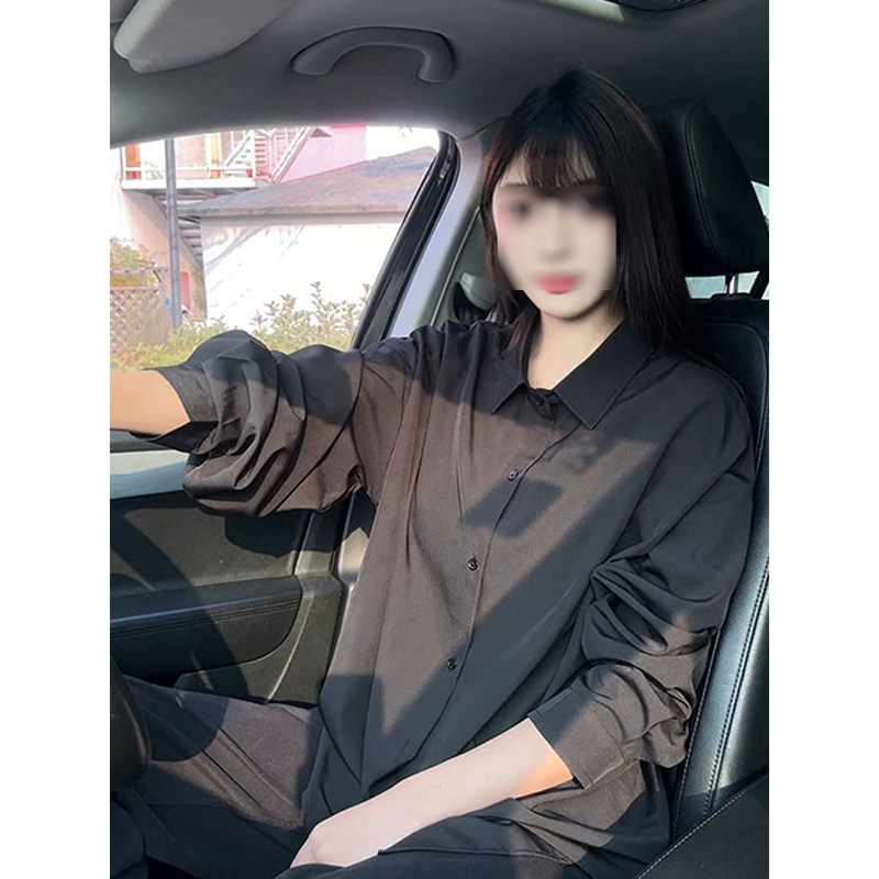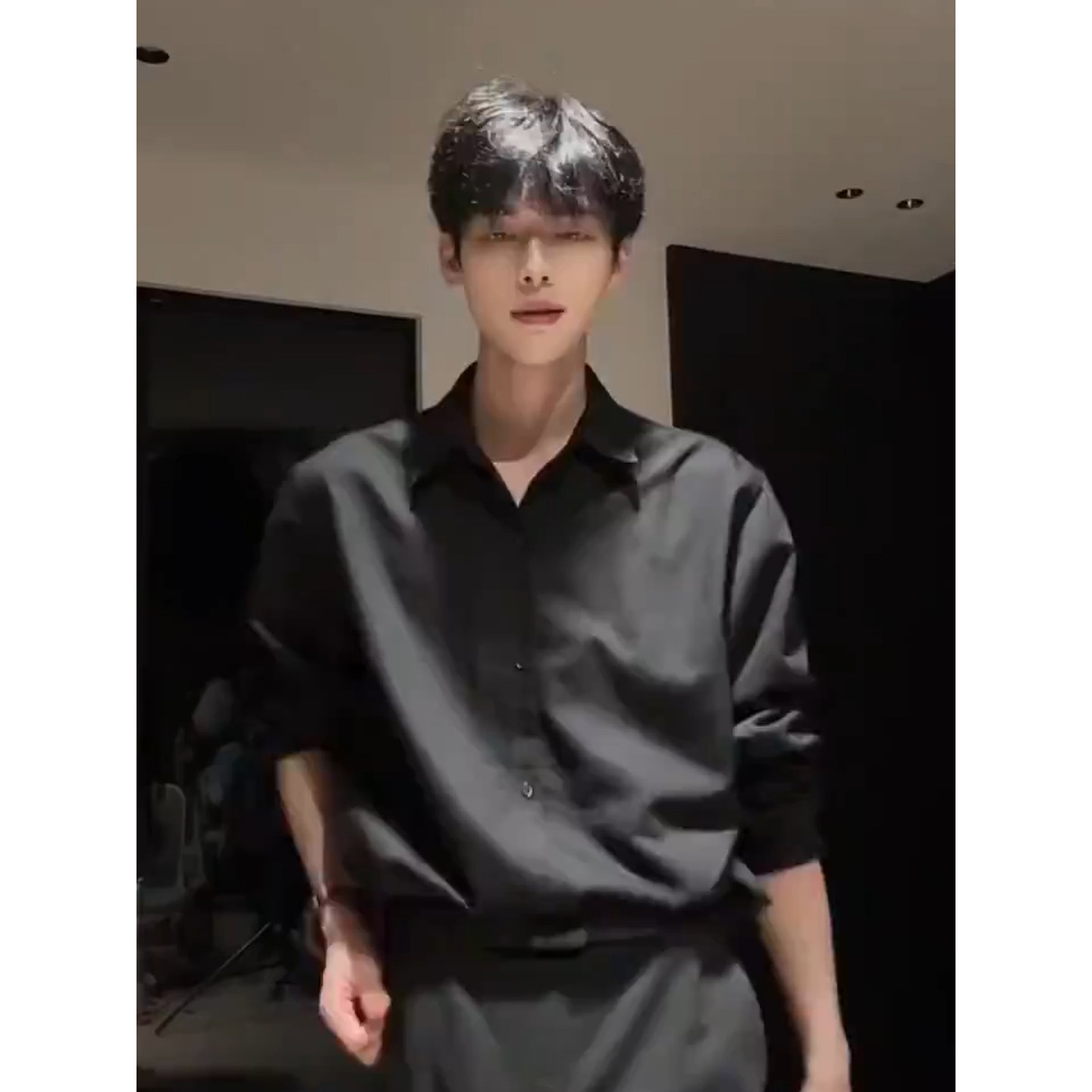 白敬亭同款黑色长袖衬衫男韩版垂感宽松禁欲系冰丝凉感dk衬衣套装