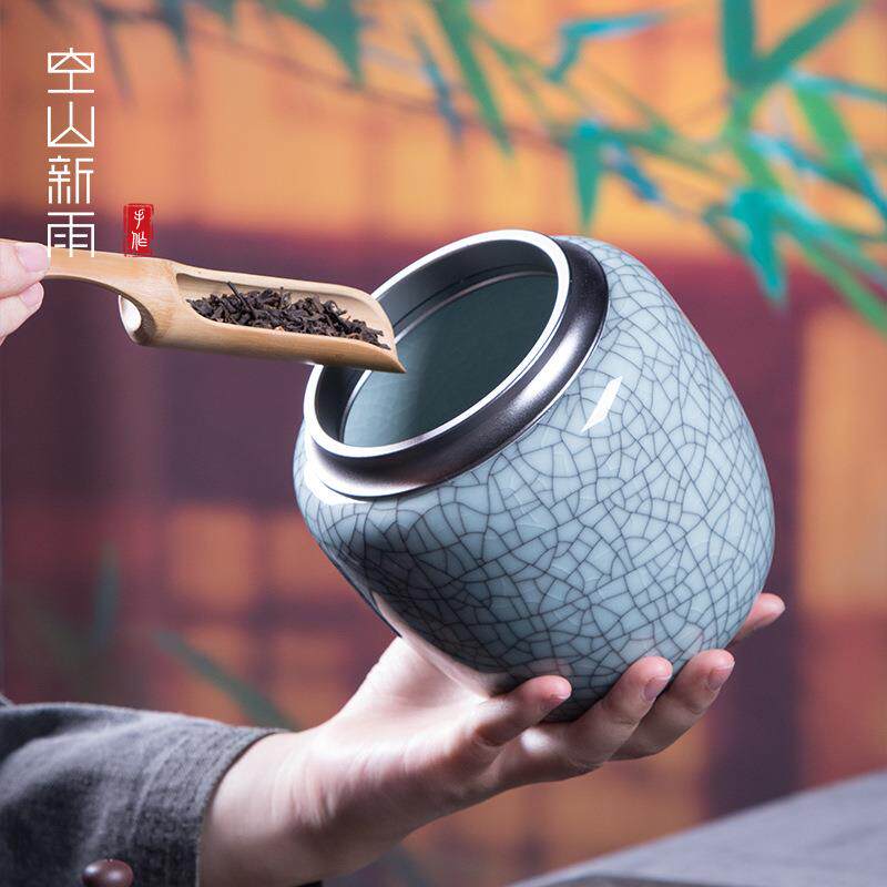 空山新茶叶罐龙泉青瓷密封储通罐陶瓷家枪灰盖大用存一斤大号用雨