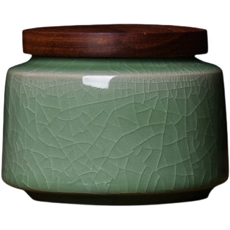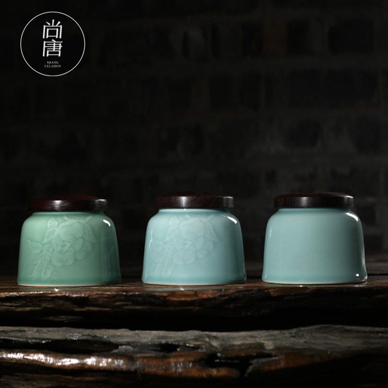 青瓷茶叶罐龙泉市陶瓷木盖防潮密封存储茶罐瓷普洱红茶盒功夫茶仓
