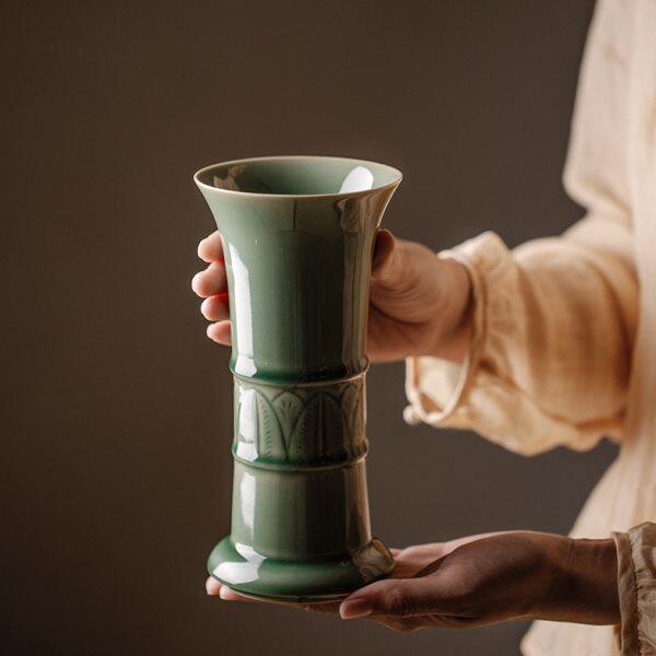 龙泉青瓷花瓶花器样板间软装摆件中式茶几茶桌陈设茶具茶叶罐装饰