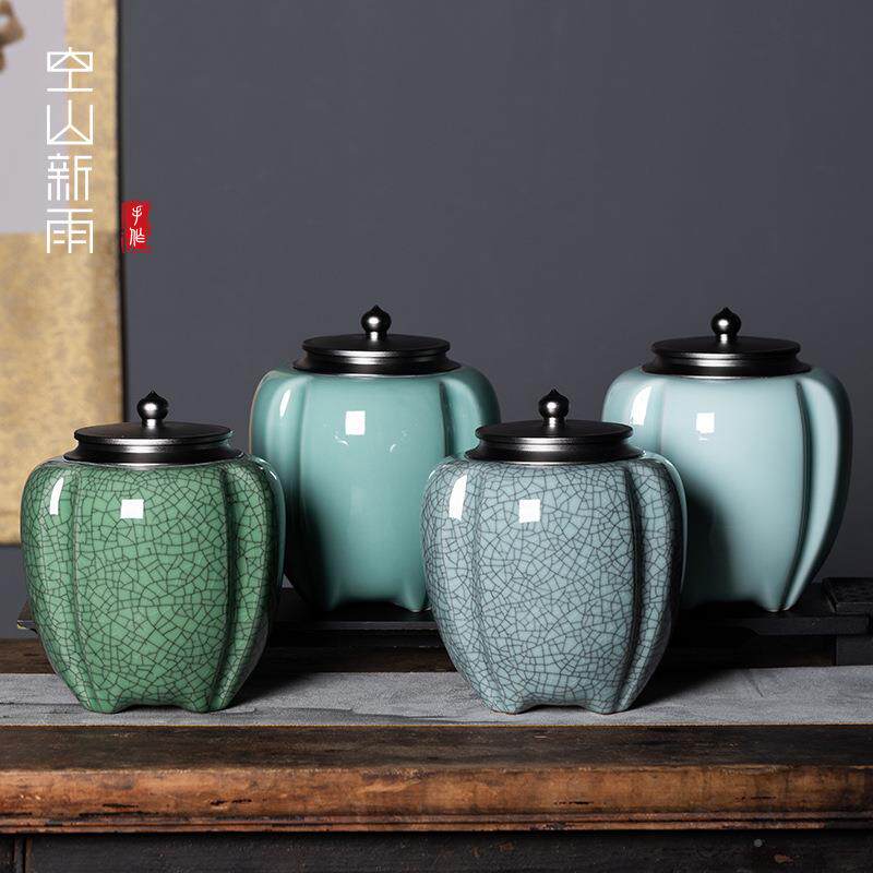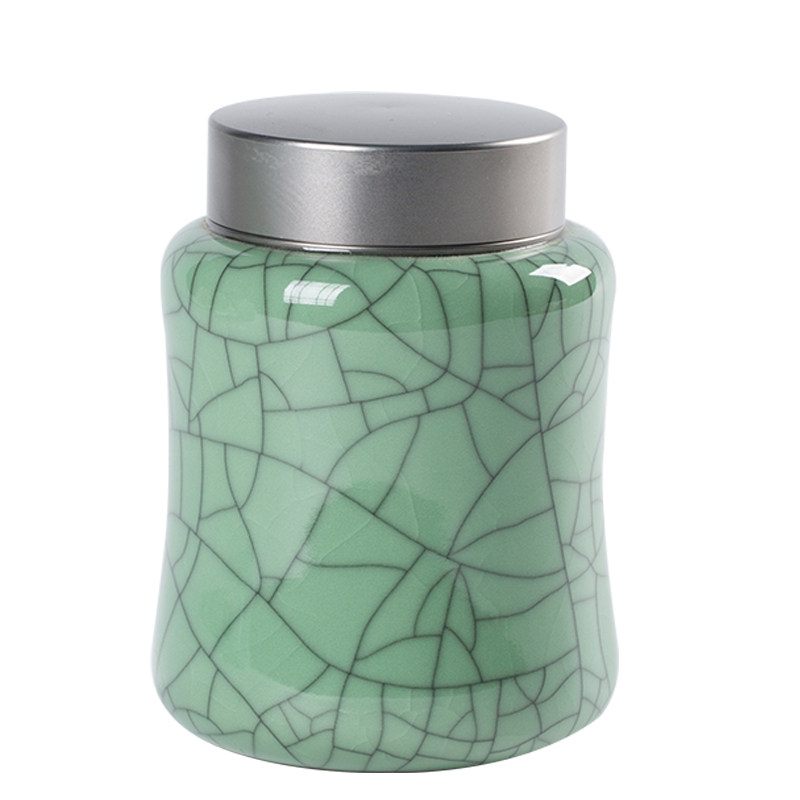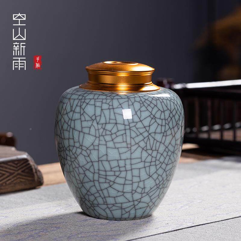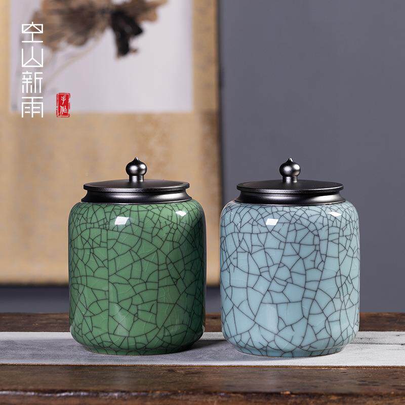 天青窑龙泉裂青瓷JYJ哥窑冰大号茶罐陶瓷茶叶叶罐普洱茶包装罐子
