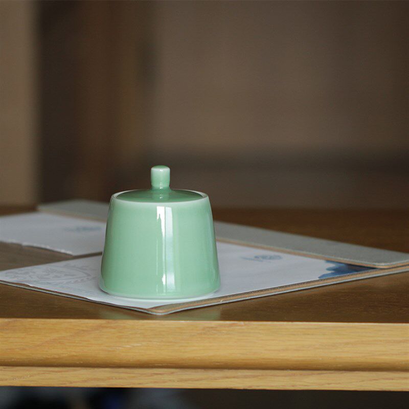 暮苍斋越窑龙泉青瓷手窗兰丹秋茶叶罐功罐夫BTK茶密封具中号绘醒