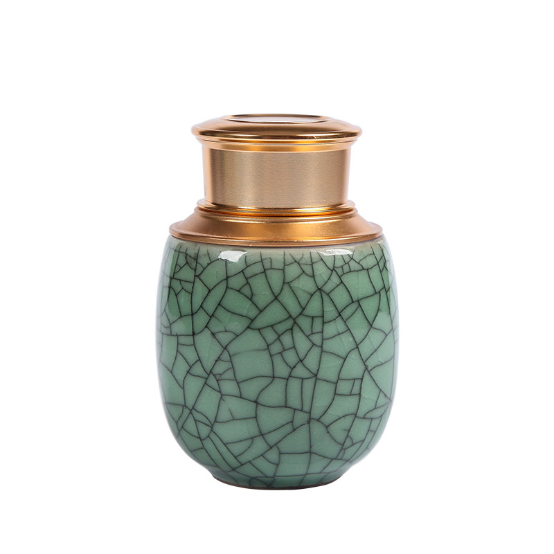 龙泉陶瓷小号茶叶罐青瓷金属盖密封储茶罐便携旅行茶叶罐茶具配件