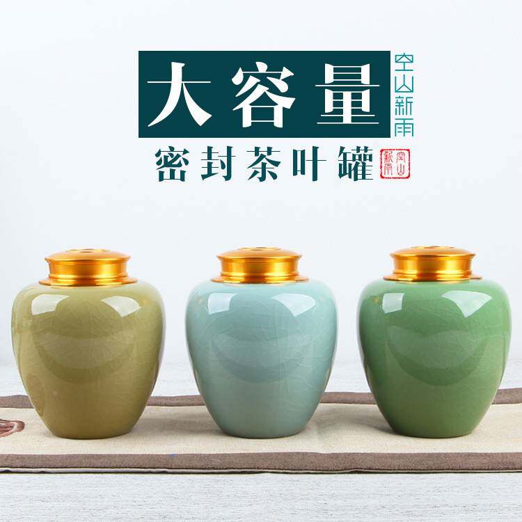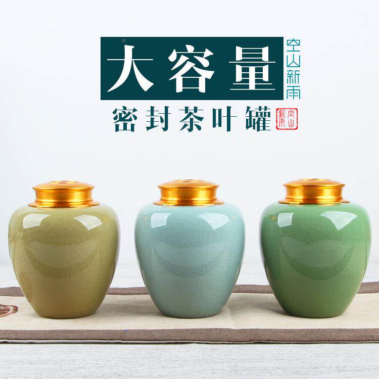 空山新雨茶叶龙泉青瓷密封罐存通储一罐陶瓷家用斤大号枪灰盖大用