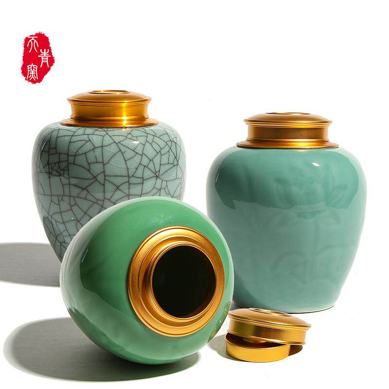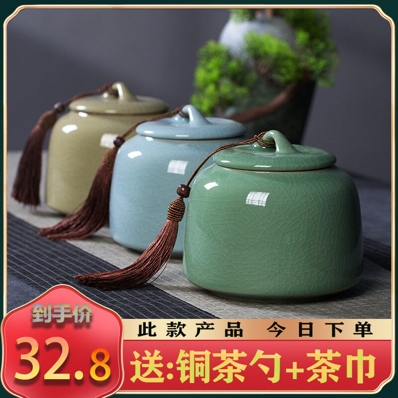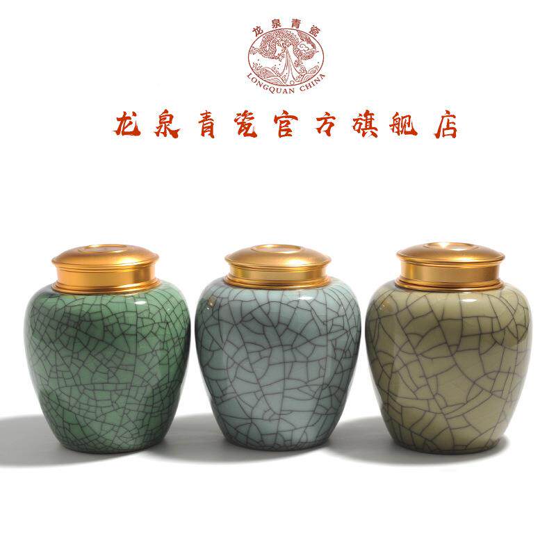 龙泉梅子青青瓷茶叶罐小号密封罐家用陶J瓷储物罐红茶绿茶金观音