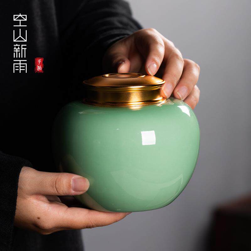空山号新雨意龙泉青瓷大金盖密封茶叶属罐陶瓷茶叶包装罐酒坛茶叶