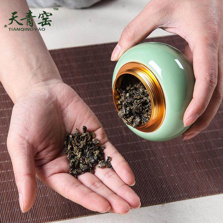 龙泉青瓷茶叶罐随身迷你密封可携式旅行小号陶瓷储茶罐茶叶包装空