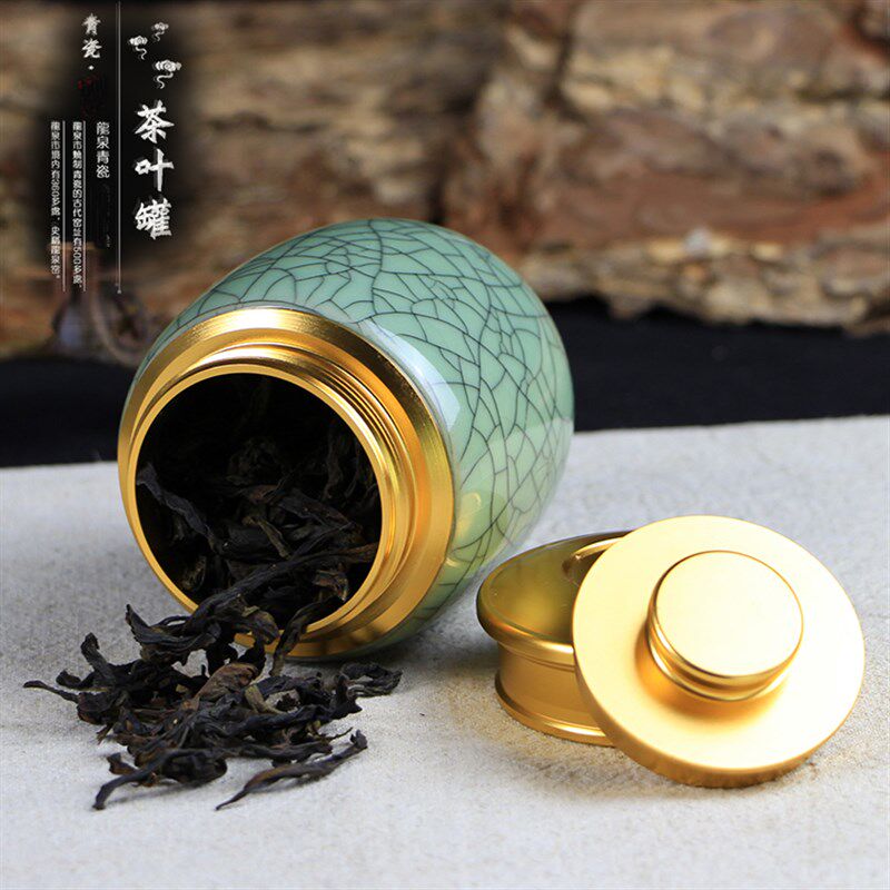 龙泉青瓷茶叶罐便携迷你小号随身储茶罐金属密封储存罐精品陶瓷罐