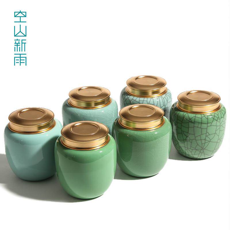 空山新雨创无品牌/意龙泉青瓷大号半密封茶叶罐斤装猴魁装岩茶包