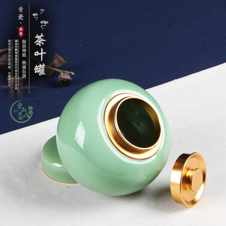 空山新雨创意龙泉青瓷号金大属盖密封茶酒坛茶叶罐罐陶瓷茶叶包装