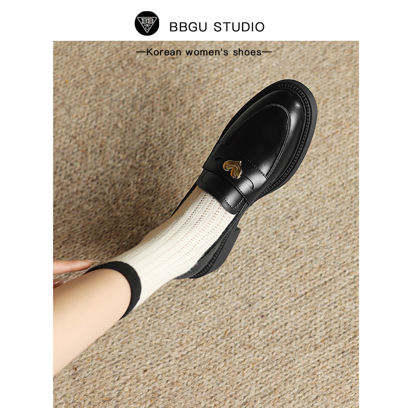 BB古 韩国真皮2025年新款英伦风休闲小皮鞋方头低跟单鞋乐福鞋